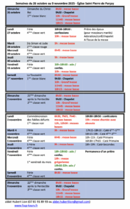 Inscriptions au catéchisme 2025-2026 – Renseignements sur le site internet. Préinscriptions avant le mardi 23 septembre. https://www.fssp-tours.fr/formation/311-2/. Finalisation sur place au centre paroissial de SPV le mercredi 24 septembre de 10h à 12h, de 16h30 à 18h. La rentrée des catéchismes aura lieu du mardi 30 septembre au vendredi 3 octobre. Les catéchismes auront lieu dans Tours-Centre.