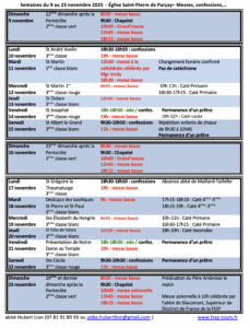 Voici les horaires des messes, et le rappel des conditions pour obtenir une indulgence plénière par jour pour un défunt en particulier.