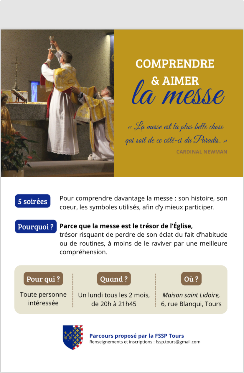 La Fraternité St-Pierre de Tours propose 2 parcours (pas exclusifs l’un de l’autre !)