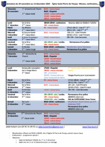 Voici les horaires des messes, et le rappel des conditions pour obtenir une indulgence plénière par jour pour un défunt en particulier.